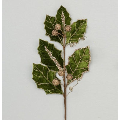 Velvet Leaf Spray Green with gold sparkle detail 72cm