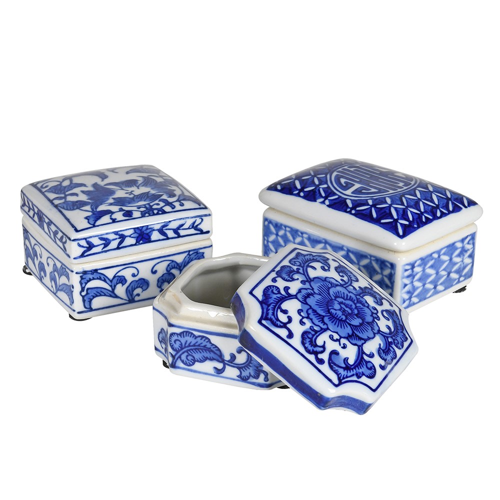 BLUE AND WHITE STORAGE BOX PORCELAIN