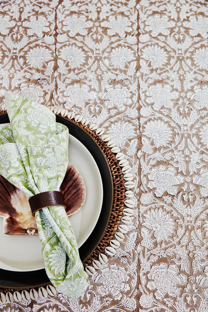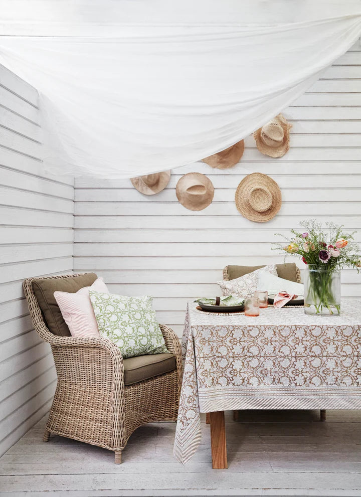 Tablecloth in natural cotton. Block printed by hand.